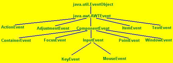 The subclasses of java.awt.AWTEvent represent the various event types tyat can be generated by the various AWT components. These event types are