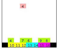 Numbers fall from the top of the game area and you can move them side to side using the left and right arrow keys. If you decide to disgard a number, you simply move it all the way to the right or the left of the game area so that it can fall through the gutter. Otherwise, it will land above a target number between 10 and 16. To score you make number fall on another number which is already positioned above a target number so that the sum of the two numbers equals the target number. You get one point for sums of 10, 11, and 12, two points for sums of 13 and 14, and three points for sums of 15 and 16. When you reach a score of 20 the game is over. The real "score" you should pay attention to is the total bricks used. You want to reach 20 while using as few bricks as possible. A score under 40 is real good.