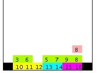 ![]() Game area with a second number in position to score. (8 + 8 = 16, this move is worth three points!) |