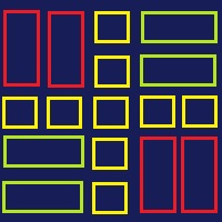 EXAMPLE: Inspect the code for this example. You will notice that in order for a rectangle to actually be drawn on the canvas, a stroke() method call must follow the call to rect(x,y,w,h). Of course, you can always fill a rectangle with a call to fillRect(x,y,w,h) as you've already seen in previous lessons, but to draw a rectangle that is not filled the rect and stroke methods must be used. Keep in mind that each time you change colors you need to use a call to beginPath() or else you wind up redrawing everything in the most recent color. |