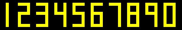 ASSIGNMENT: Although you can probably think of a number of ways of recreating the image shown to the left as a JavaScript applet, the technique you are required to use is probably not the simplest approach to take. For this assignment you must use only fillRect(int,int,int,int) to actually draw the numbers. |