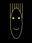 Your challenge in this activity is to recreate the face shown to the right. Use bezier curves to create the outline of the face and the mouth. Otherwise create the hair and eyes anyway you want to within a JavaScript applet. |